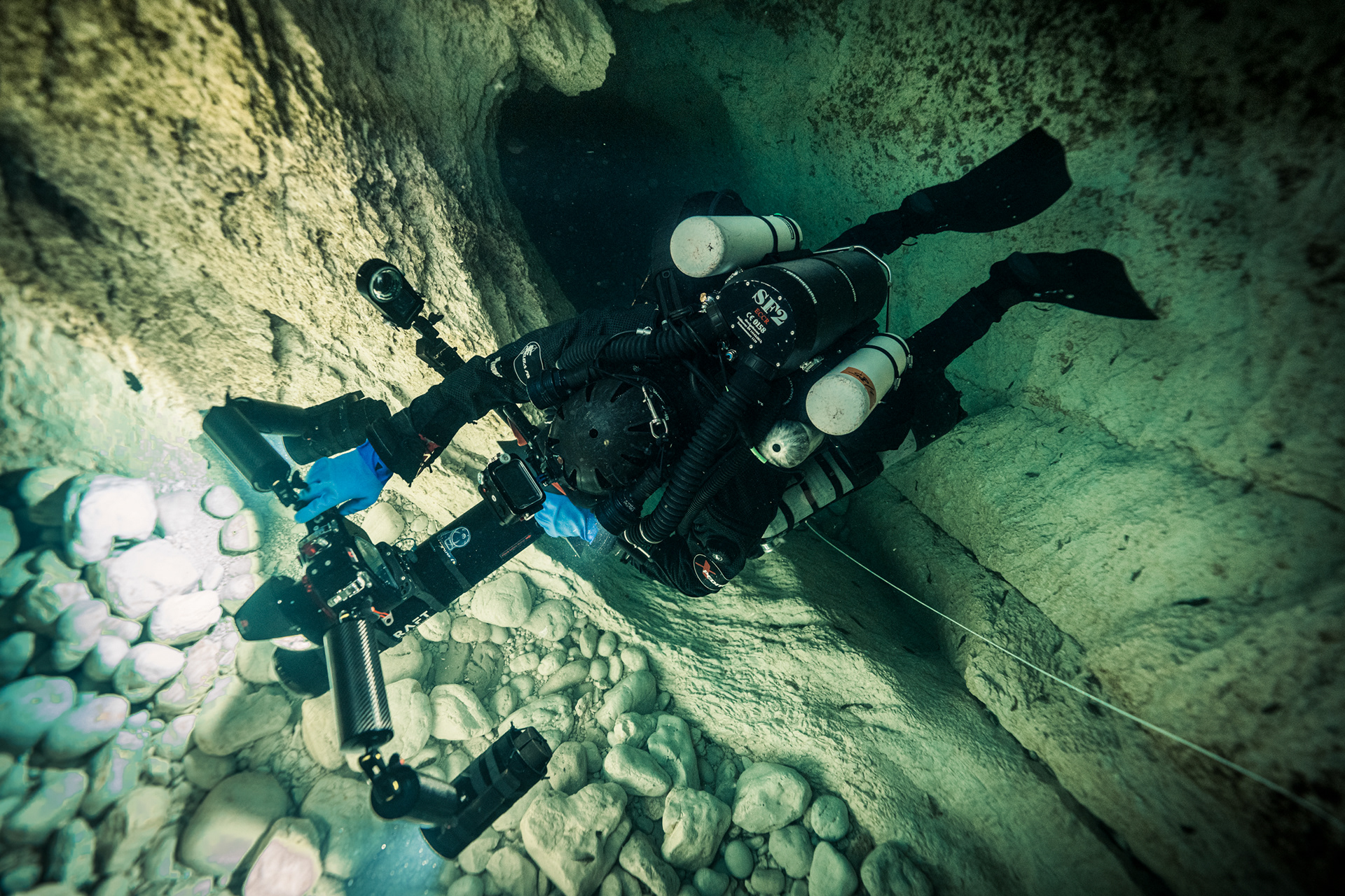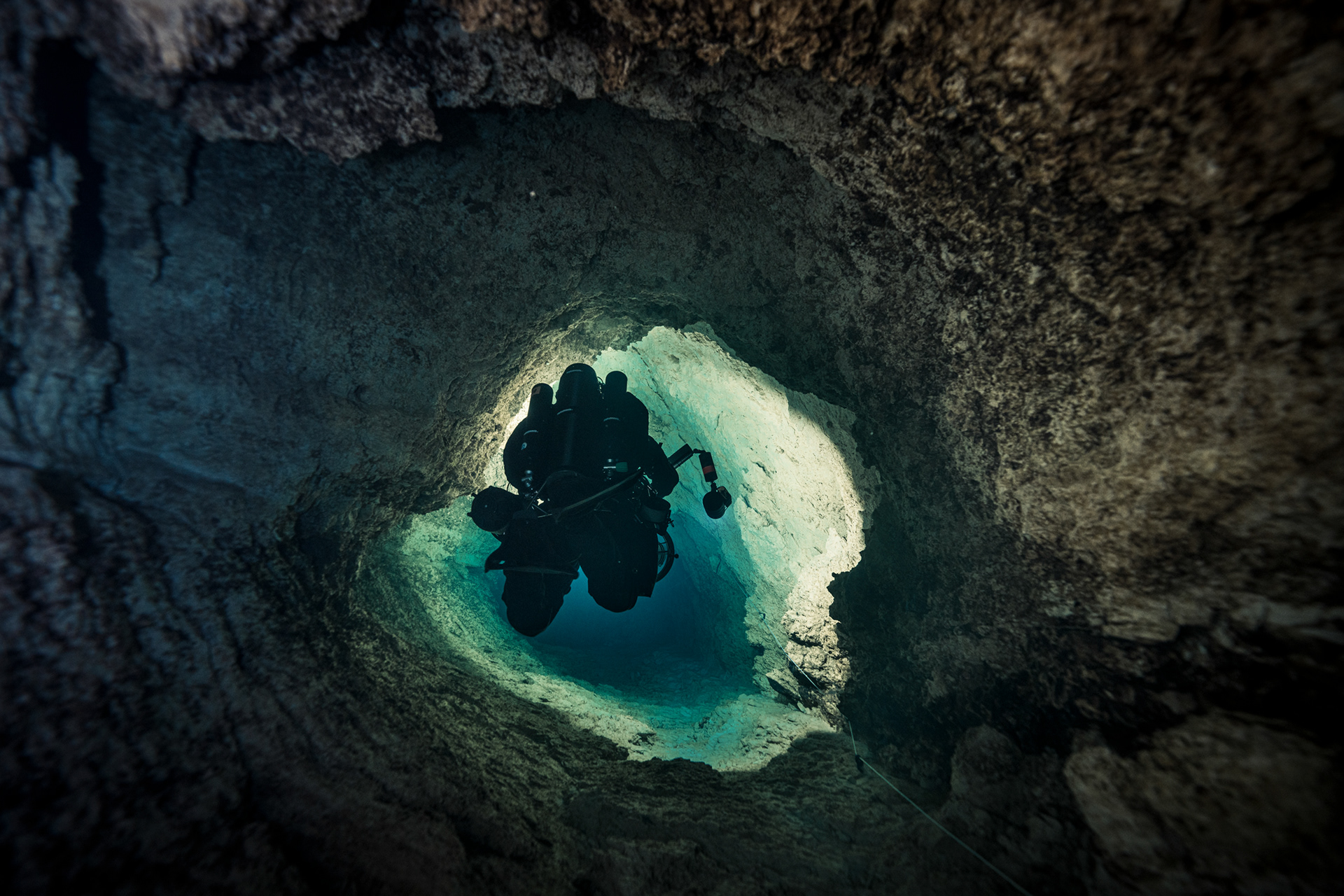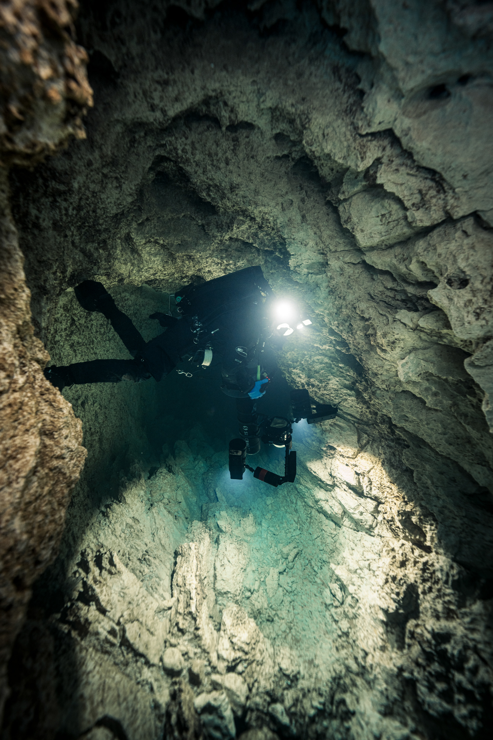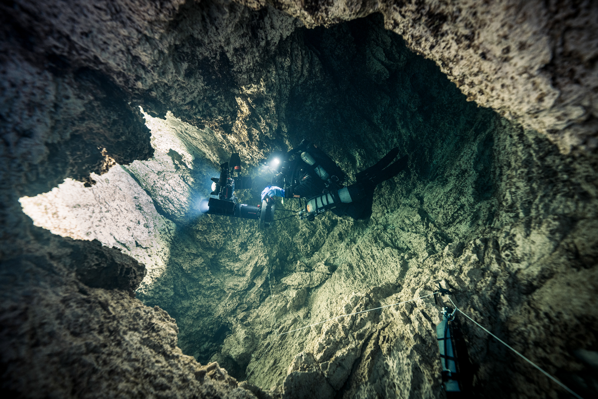 The constant temperature of 10°C acts as a preservative for the cave’s visibility. It keeps the water sharp, almost clinical in its transparency. Every detail of the rock face, every bolt on the permanent line, and every bubble was rendered in high-definition against the deep sapphire backdrop.