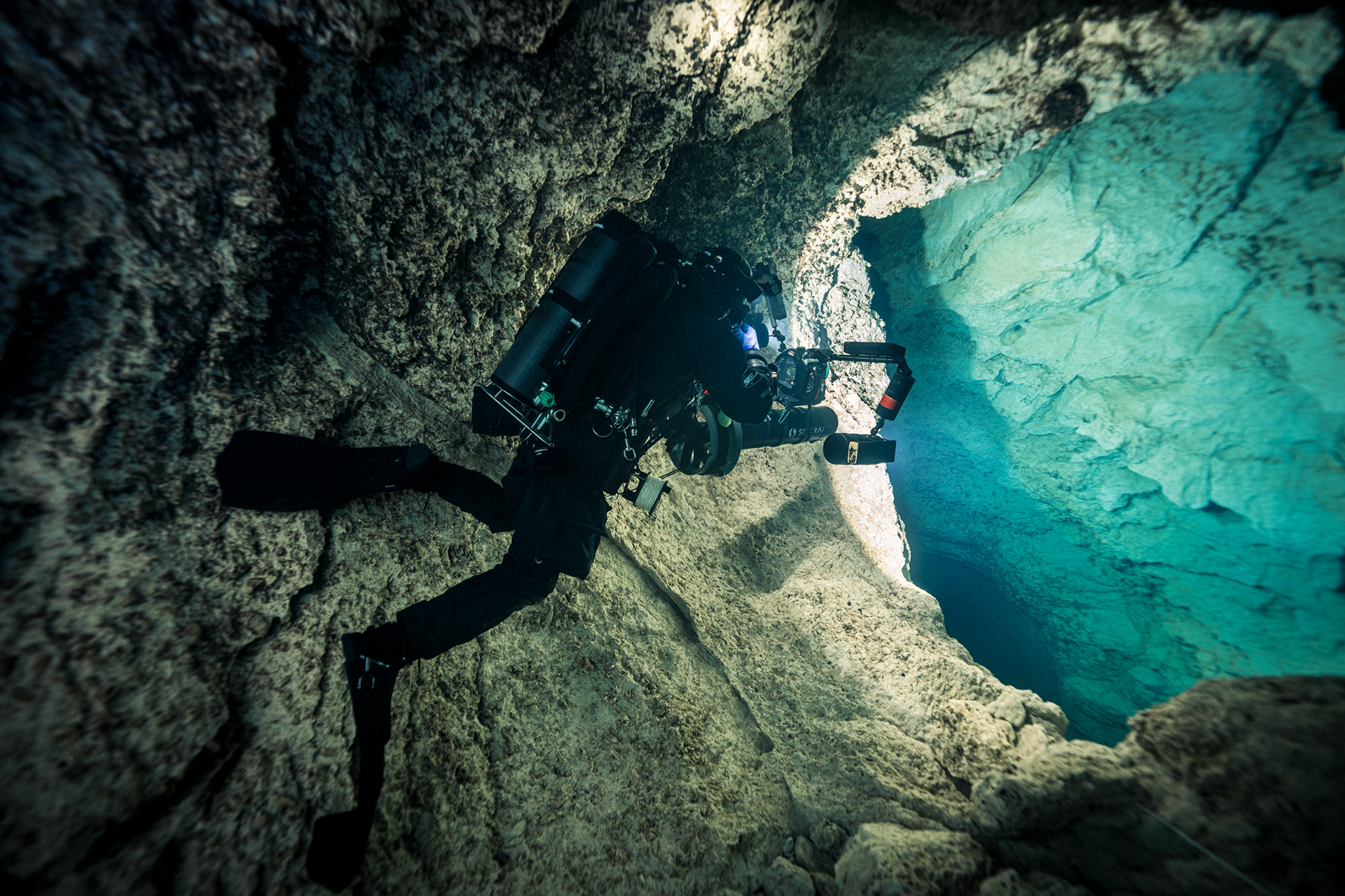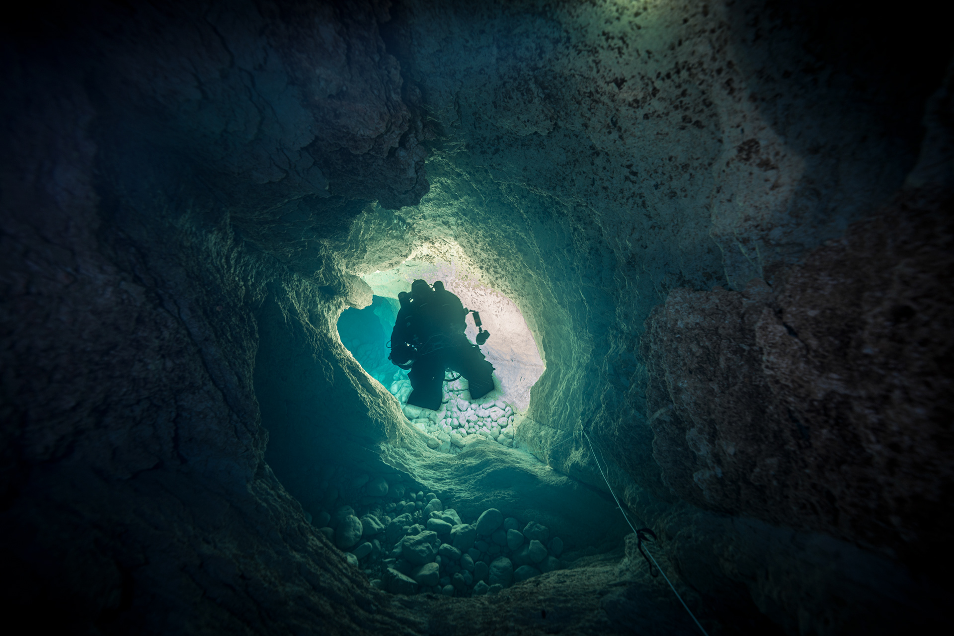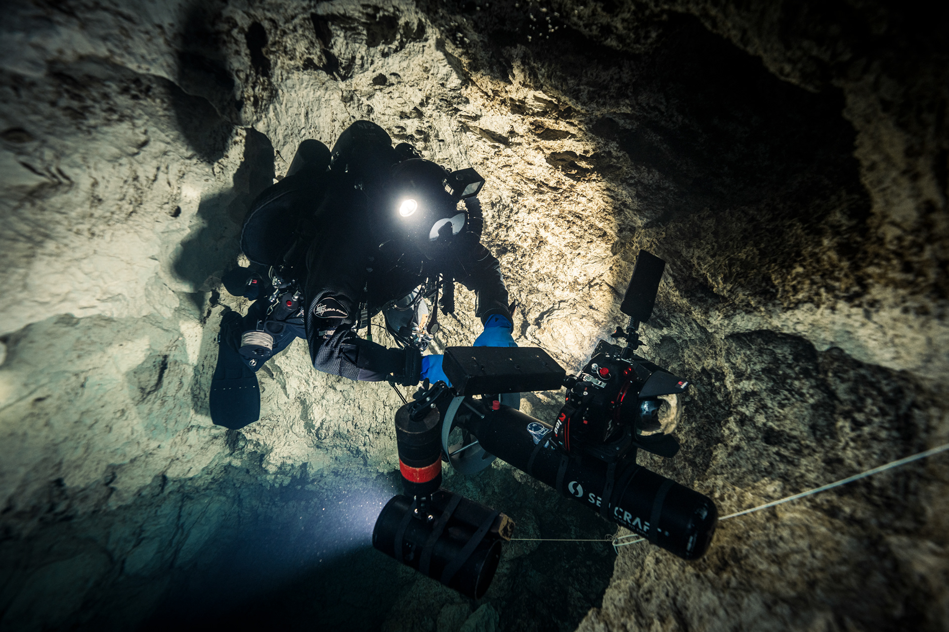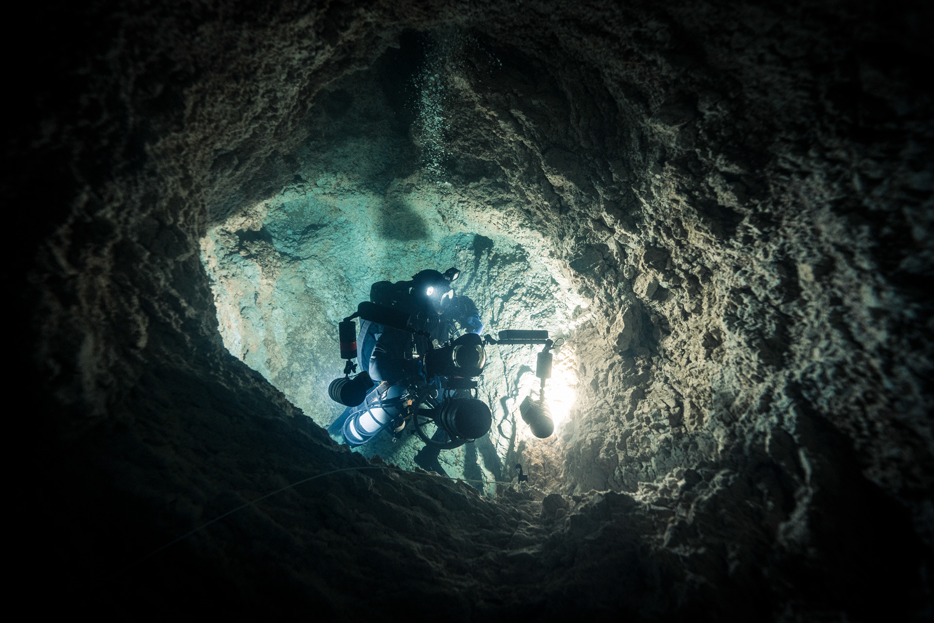 The constant temperature of 10°C acts as a preservative for the cave’s visibility. It keeps the water sharp, almost clinical in its transparency. Every detail of the rock face, every bolt on the permanent line, and every bubble was rendered in high-definition against the deep sapphire backdrop.