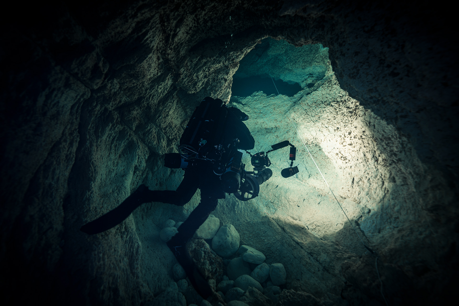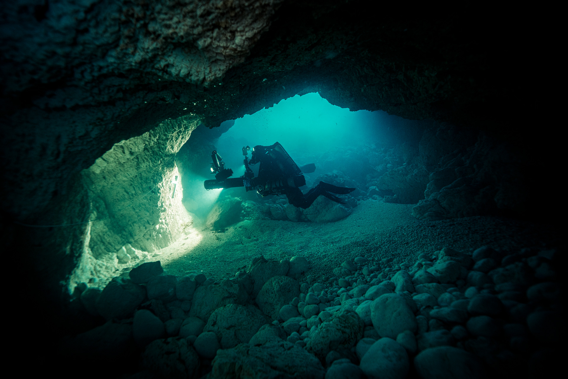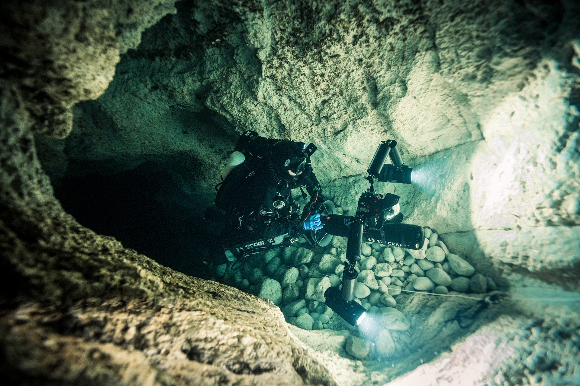 The ritual of preparation at the water’s edge is amplified by the weight of the site’s history. Every piece of equipment, from the DPVs to the redundant lighting, was checked with the meticulousness required for a mission-specific dive. We were there as observers, ensuring the cave's permanent safety lines remained as steadfast as the rock they are anchored to.