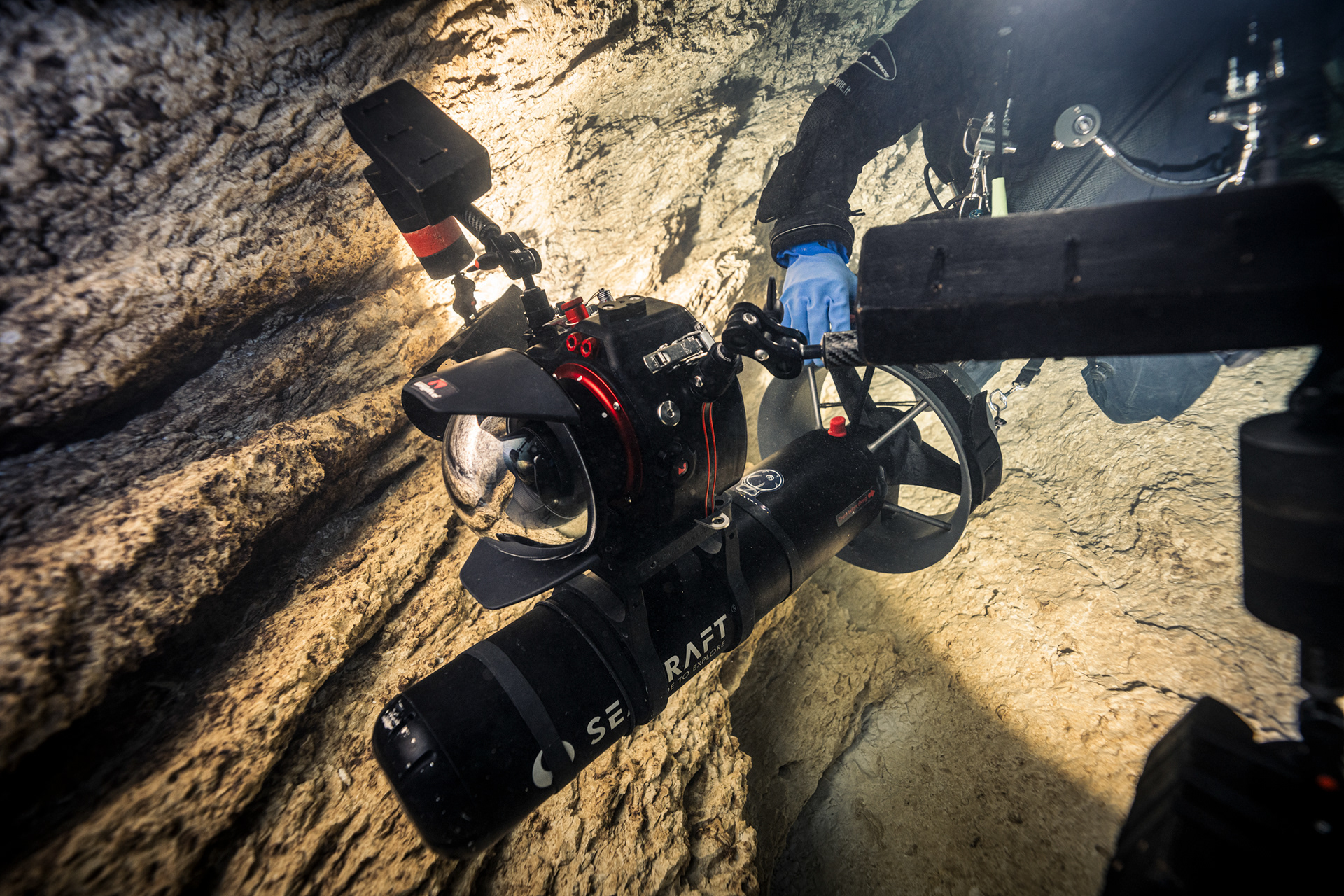 Gorgazzo is a living system. Even in periods of low rain, the spring’s 'breath' is palpable. Carrying high-end camera rigs through the surge would be a grueling task if not for the precision of our DPVs. They allowed us to navigate the flow with the stability needed to frame the limestone architecture without disturbing the pristine clarity.