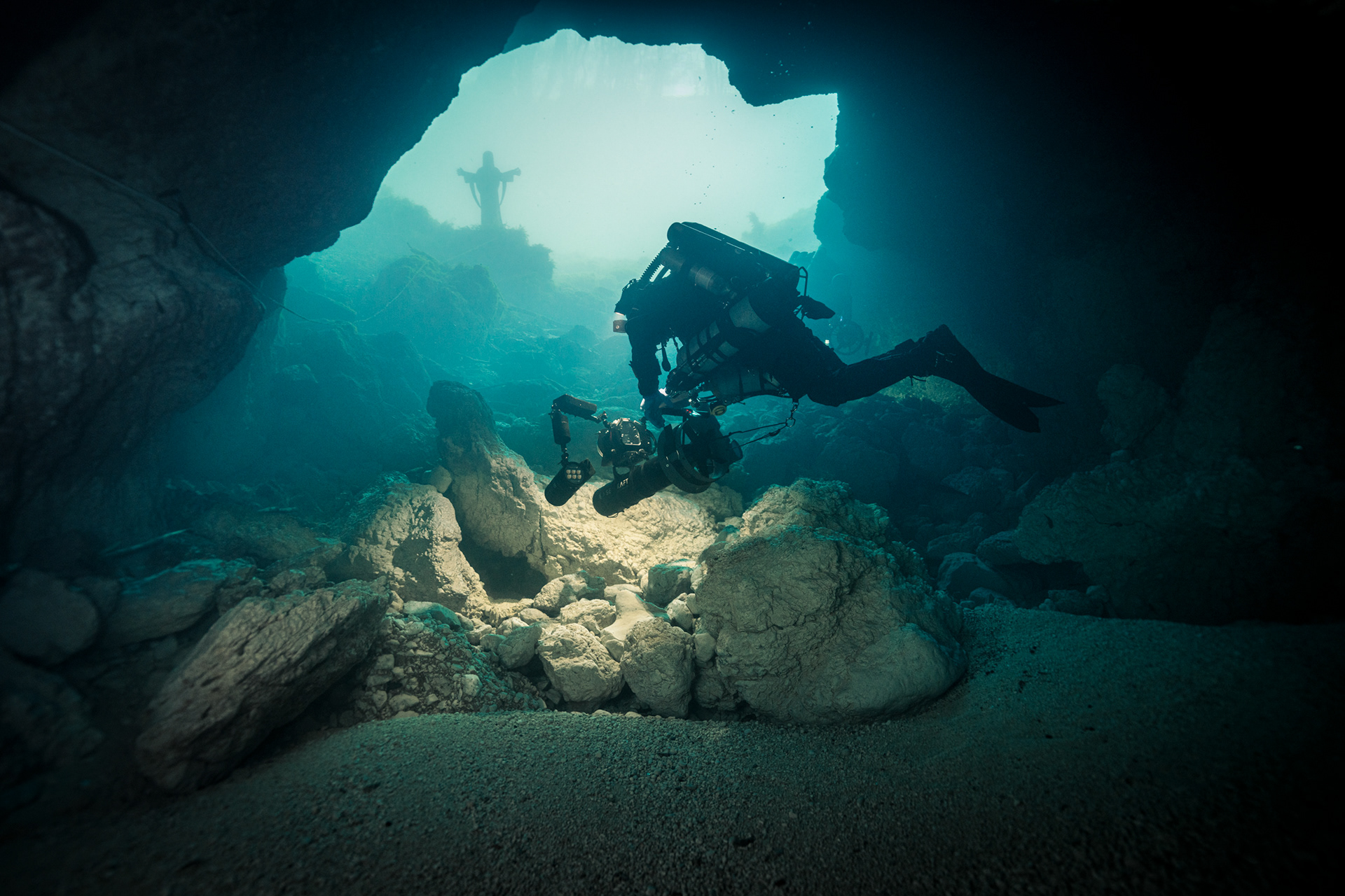 At a depth of 9 meters sits a statue of Christ, a beacon for divers entering the abyss and a landmark visible from the surface on clear days.