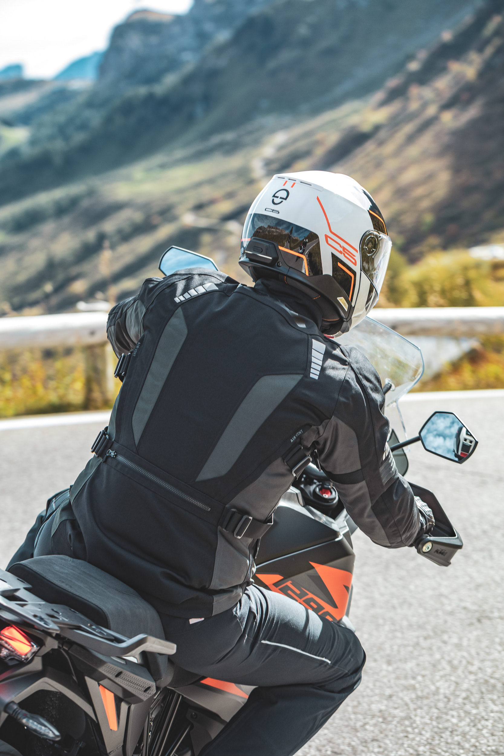 During the single-day photoshoot, our team at digitalmove.it worked well with the two riders coordinating everybody from product specialist to drivers and assistants to showcase the Schuberth C5 in different driving spots across the planned route.